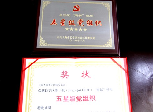 这是上海九龙医院获得的“五星级党支部”铭牌和奖状。