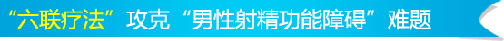 六联疗法对治疗射精功能障碍具有全面、安全、高效的特点,它是美国性科学研究会联合美国辉瑞公司等世界顶尖科研专业机构进行技术攻关所得。上海九龙男子医院率先引进这套疗法,并成功应用于临床治疗。九龙男子医院专家指出,该疗法从六个方面入手,针对每位患者不同情况制定个性化诊疗方案,精确分型,对症治疗,真正帮助广大男性朋友赢来"性福"的曙光。